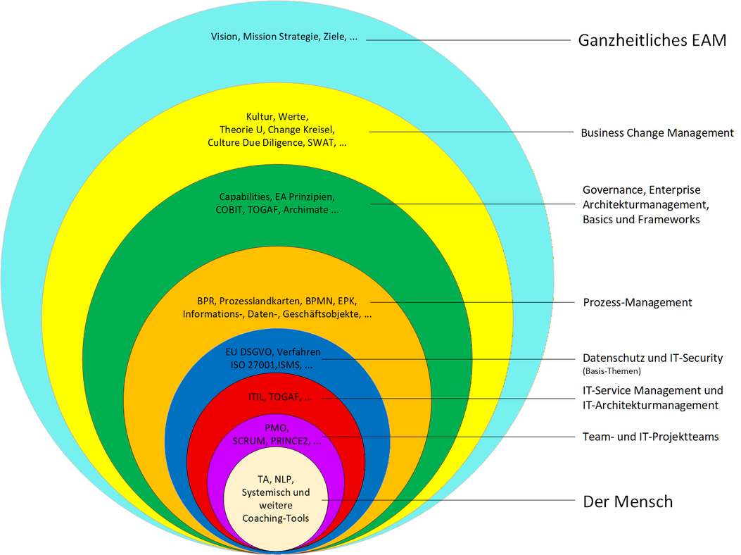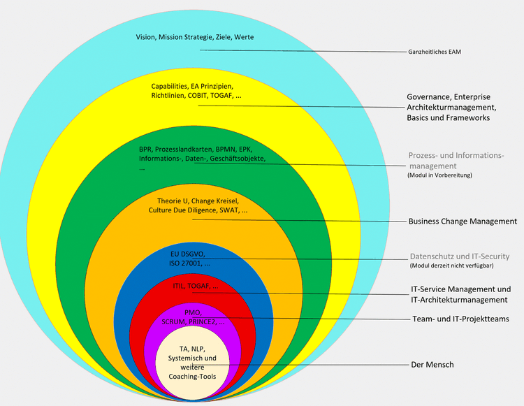 Unsere Dienstleistungen und Beratungsmodule richten sich an Unternehmen und Menschen, die im digitalen Zeitalter menschliche Werte und technologische Innovation vereinen möchten. Wir begleiten und beraten sie mit einem ganzheitlichen Enterprise Architektur Management Ansatz mittels unserer verschiedenen und je nach Reifegrad und Bedarf ihrer Organisation einzeln oder in Kombination buchbarer Module, von einer IT-gestützten Organisationsberatung über die Entwicklung von Teams bis persönlich an Sie angepasstes Coaching.Damit werden Sie, ihre Team und ihr Unternehmen die Herausforderungen meistern und neue Potenziale erschließen. Mit einer klaren Vision stärken wir Ihre Anpassungsfähigkeit und ermöglichen nachhaltige Erfolge in einer sich ständig verändernden Welt.